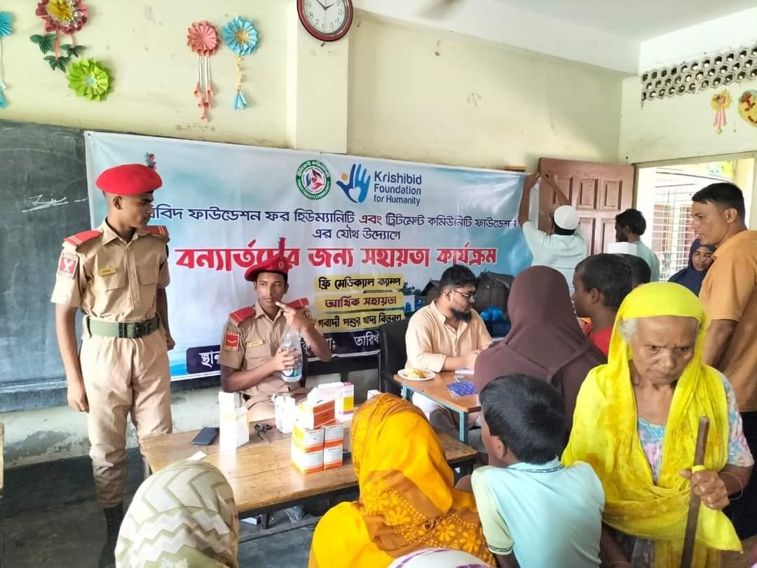 কৃষিবিদ ফাউন্ডেশন ফর হিউম্যানিটি (কেএফফএইচ) এবং ট্রিটমেন্ট কমিউনিটি ফাউন্ডেশন (টিসিএফ) এর যৌথ উদ্যোগে আজ (শুক্রবার) কুমিল্লা জেলার ব্রাহ্মণপাড়া উপজেলায় নাইঘর সরকারি প্রাথমিক বিদ্যালয়ে বন্যাদূর্গত ব্যক্তিদের জন্য মেডিকেল ক্যাম্প, নগদ অর্থ প্রদান এবং প্রান্তিক খামারিদের গোখাদ্য প্রদান কার্যক্রম আয়োজিত হয়।